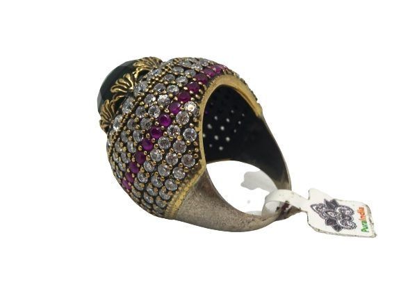 Anillo de plata bañada de la India con cristal color esmeralda importado de la india mediante comercio ético.