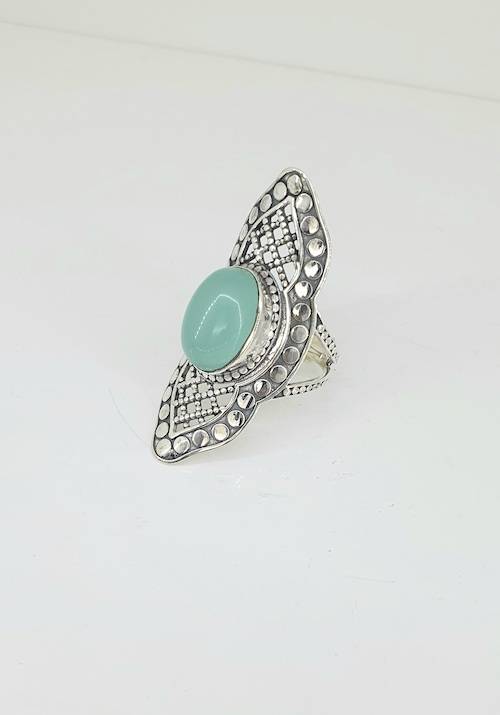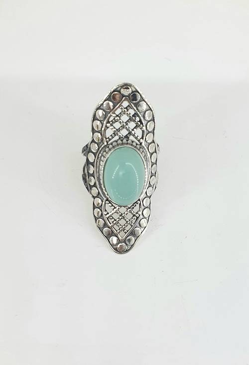 Anillo de plata con calcedonia importado de la india mediante comercio ético.