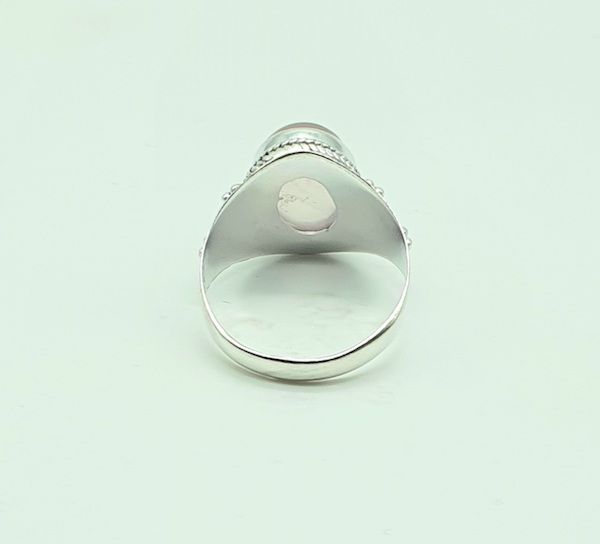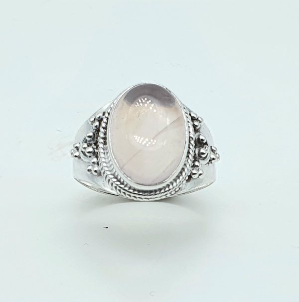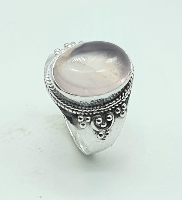 Anillo de plata con cuarzo rosa importado de la india mediante comercio ético.