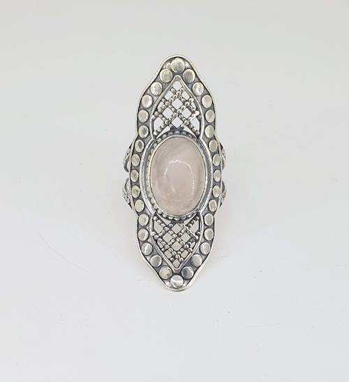 Anillo de plata con cuarzo rosa importado de la india mediante comercio ético.