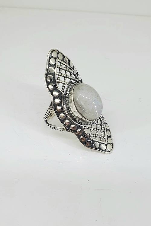 Anillo de plata con piedra luna importado de la india mediante comercio ético.
