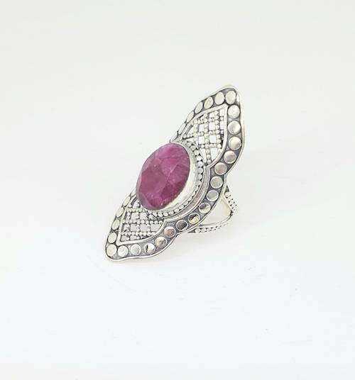 Anillo de plata con rubí de jaipur importado de la India mediante comercio ético.