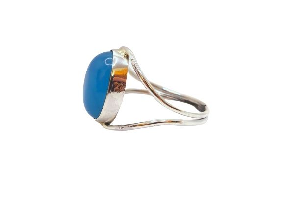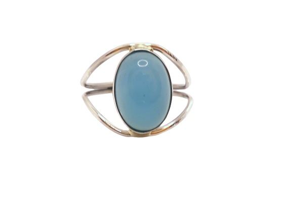Anillo de plata de la India con calcedonia importado de la india mediante comercio ético.