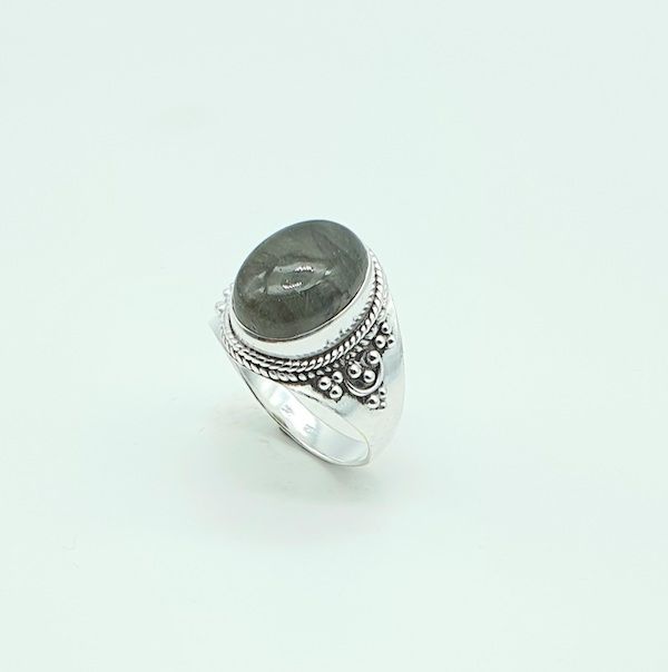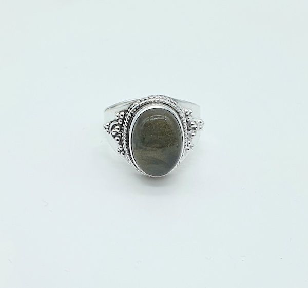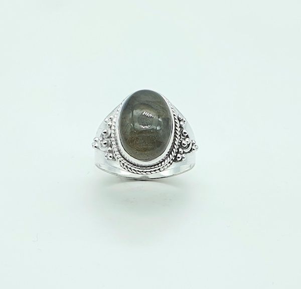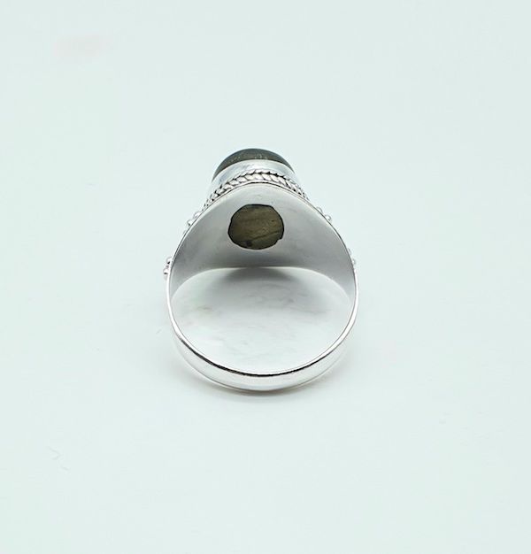 Anillo de plata con labradorita importados de la india mediante comercio ético.