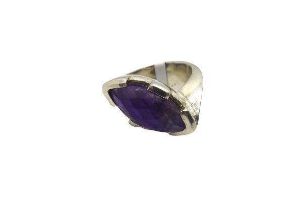 Anillo plata india con amatista facetada importado de la India mediante comercio ético.