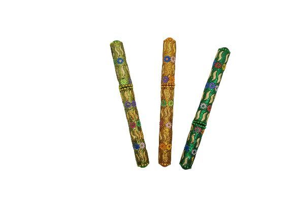 Bolígrafo de colores con florecitas y eses doradas importado de la India, mediante comercio ético.