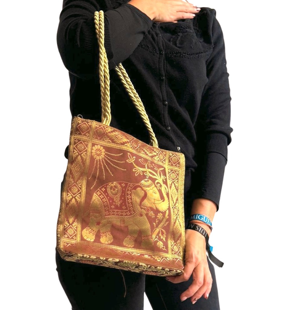 Bolso indio de seda con estampado de elefante importado de la India a través de comercio ético