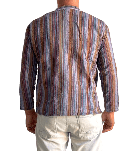 Camisa étnica india para hombre de algodón con rayas de colores importada de India a través de comercio ético.