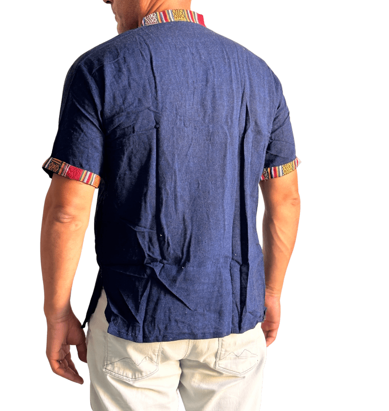 Camisa étnica india para hombre de algodón manga corta importada de India a través de comercio ético.