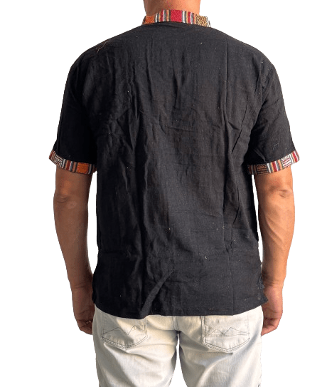 Camisa étnica india para hombre de algodón manga corta importada de India a través de comercio ético.