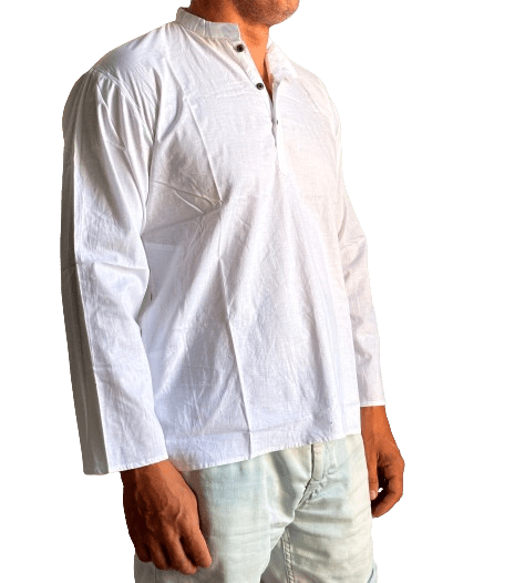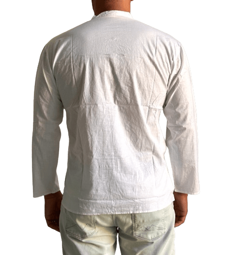 Camisa étnica india unisex de algodón de color blanco roto importada de India a través de comercio ético.
