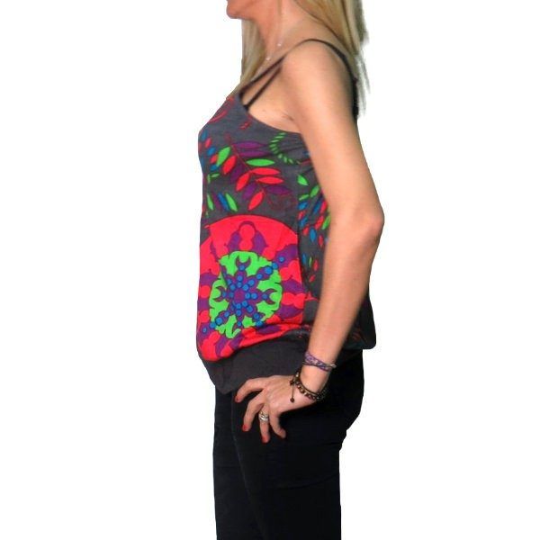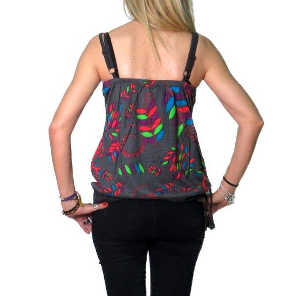 Blusa india de algodón con tirante doble y ajustable a la cintura mediante una cinta lateral.