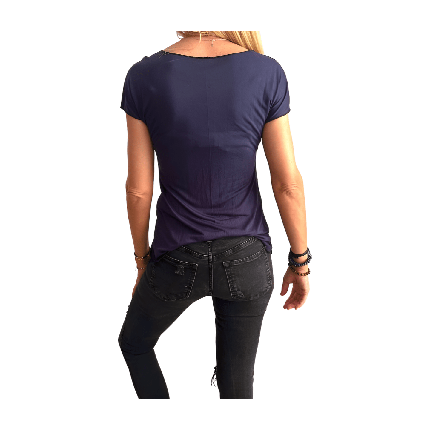 Camiseta india azul marino GOA importada de la India a través de comercio ético.