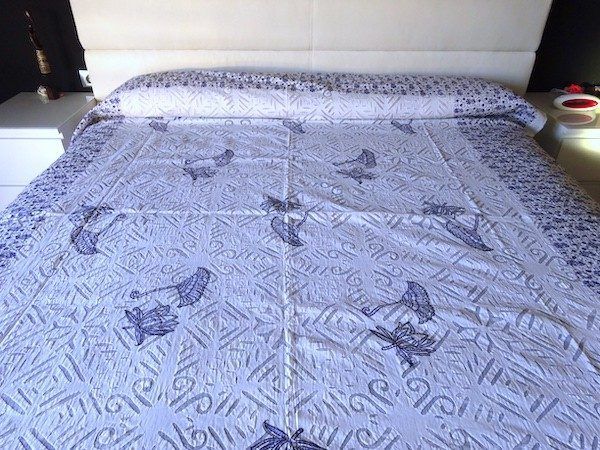 Colcha india de algodón con bordado transparente azul