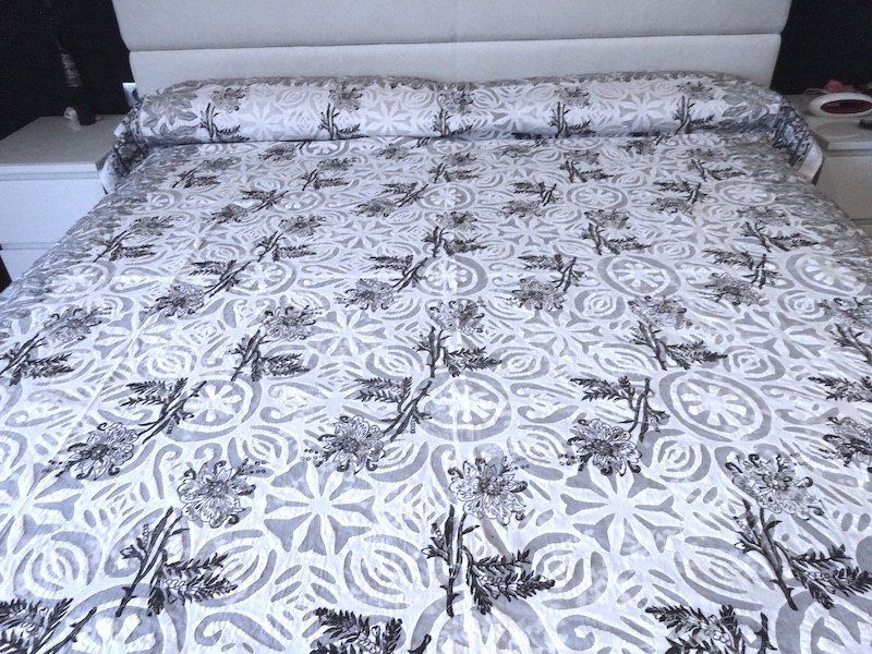 Colcha india de algodón con bordados transparentes y negros