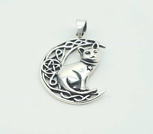 Colgante de plata gato en la luna
