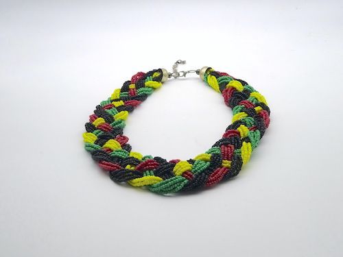 -MODELO 1: trenza cuatricolor (verde, amarillo, negro y rojo).