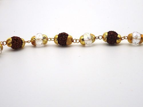 Collar de rudraksha y cuarzo blanco importado de la india a través de comercio ético.
