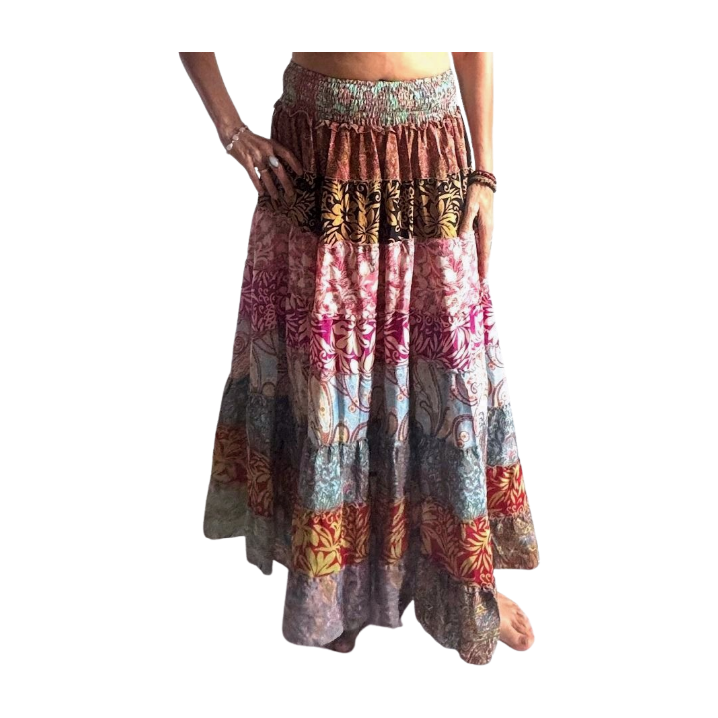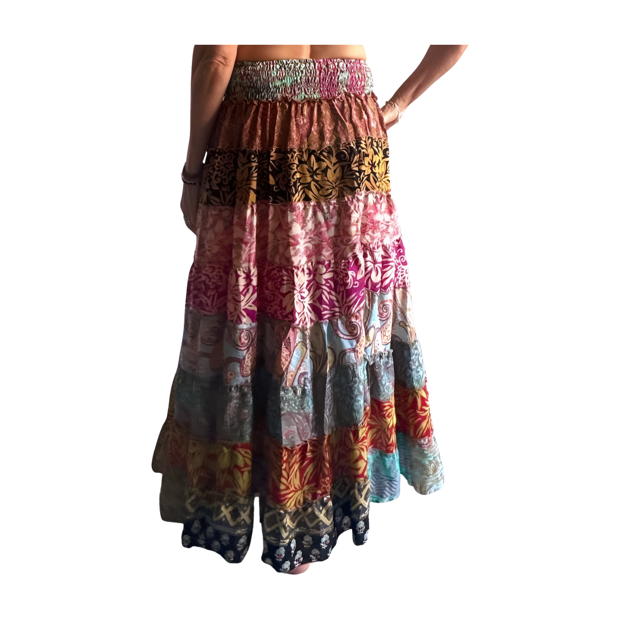 Falda de seda india multicolor importada de India a través de comercio ético.