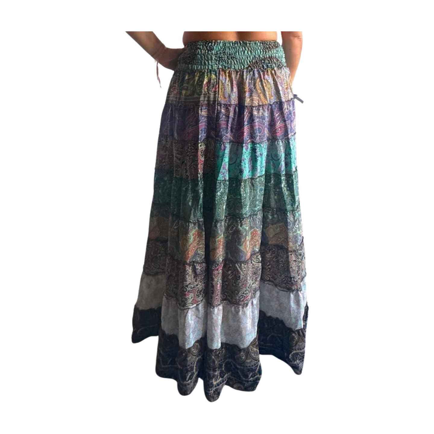 Falda de seda india multicolor importada de India a través de comercio ético.