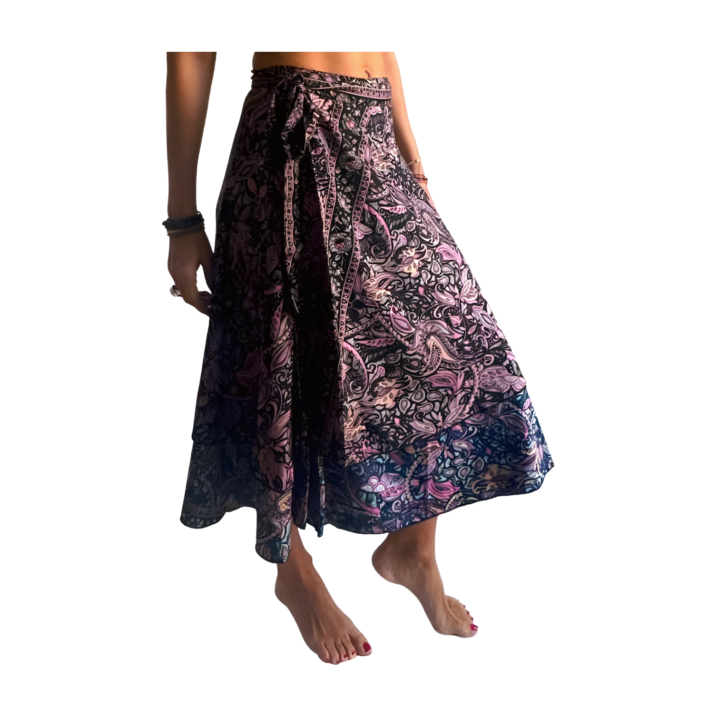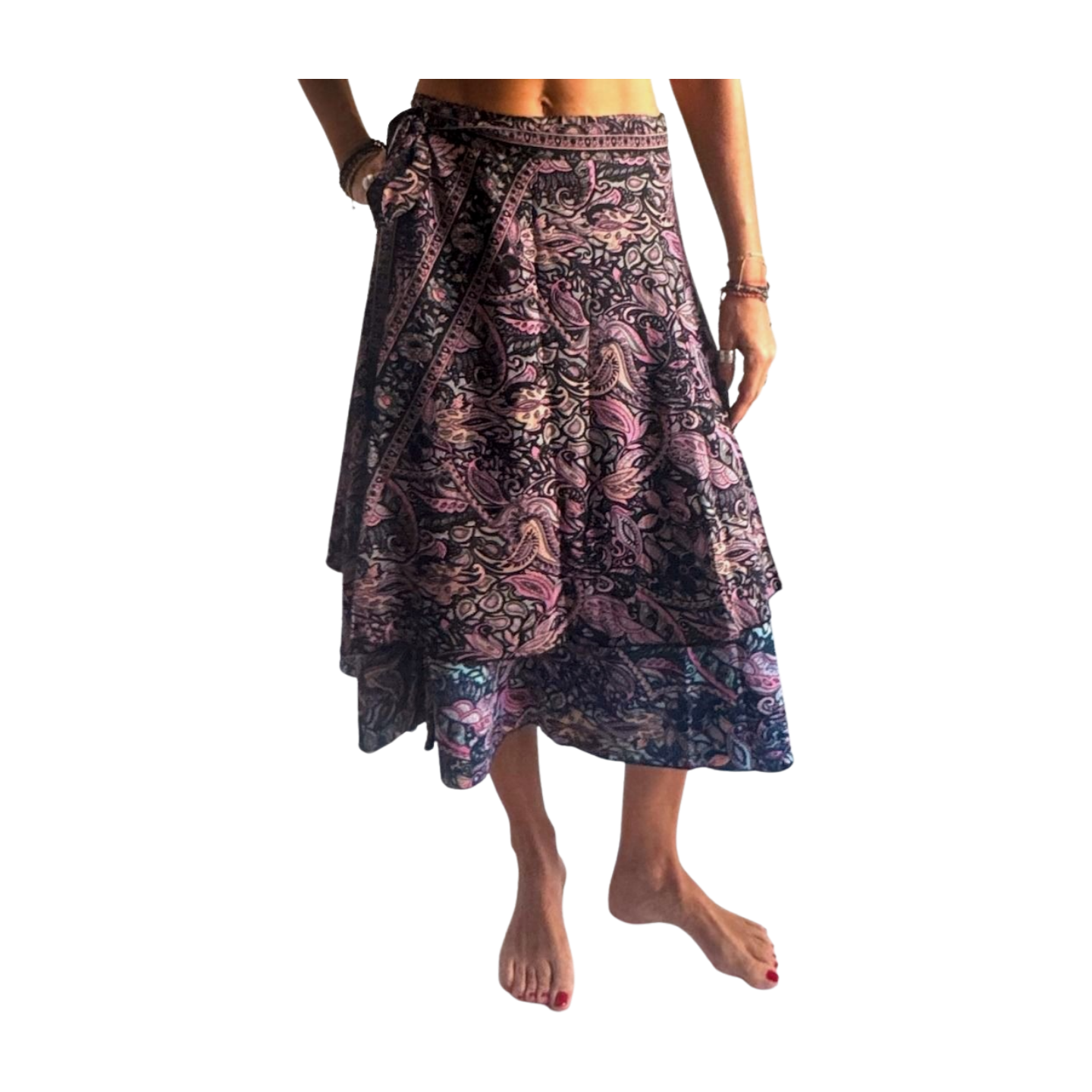 Falda pareo india de seda con estampado floral