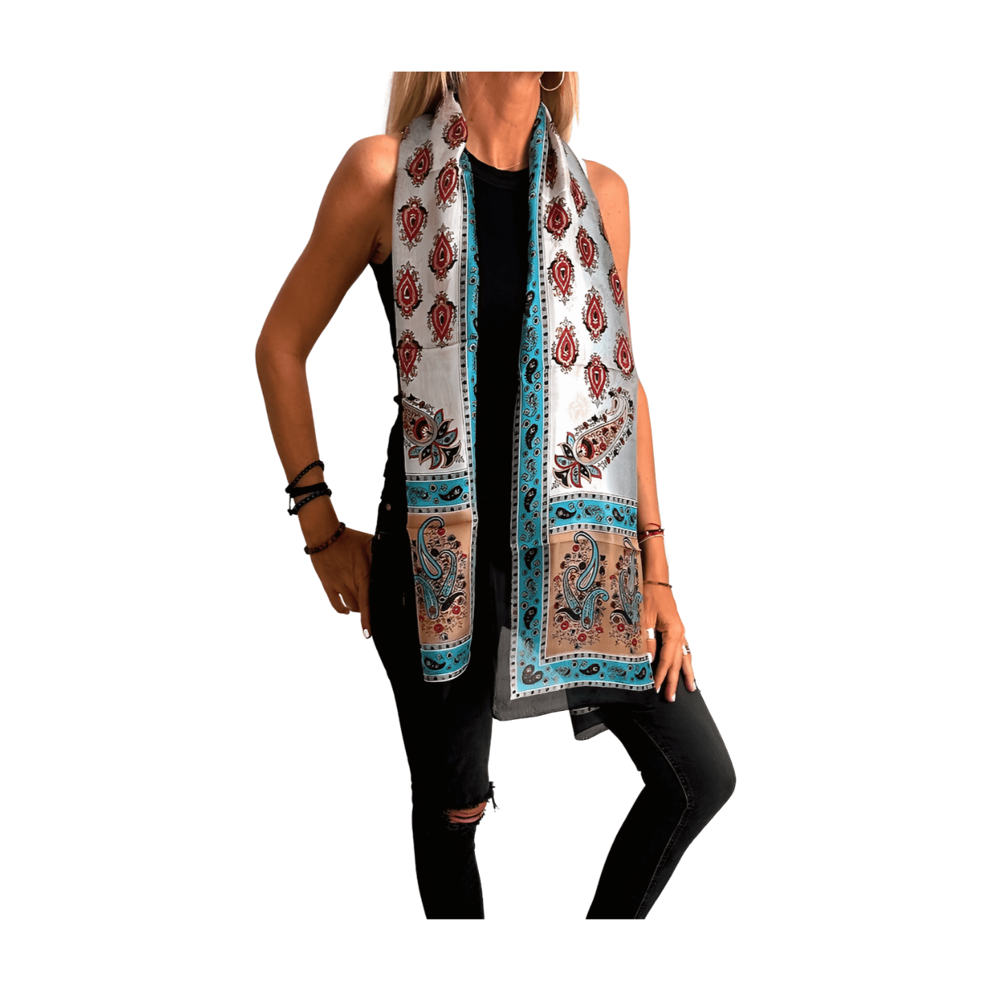 Foulard de seda de la india estampado negro importado de India a través de comercio ético.