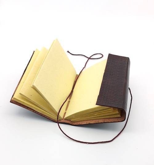 Libreta 100% ecológica con papel reciclado y cubiertas de piel importada de la India mediante comercio ético.