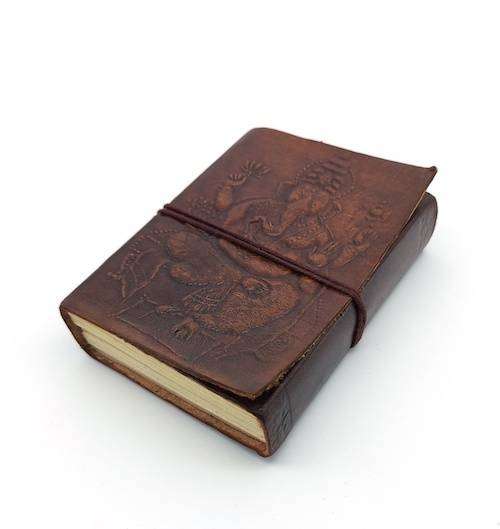 Libreta 100% ecológica con papel reciclado y cubiertas de piel importada de la India mediante comercio ético.