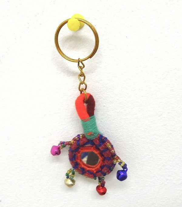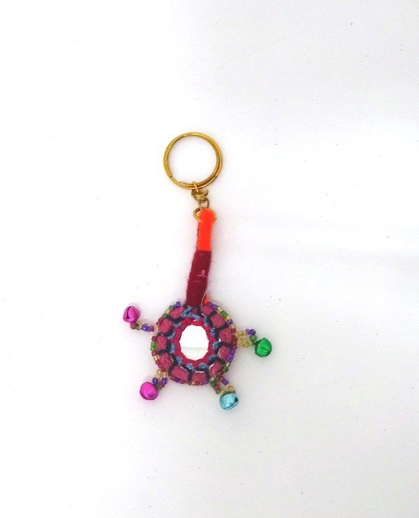 Llavero étnico de la India de tejido con espejito importado de la India a través de comercio ético.
