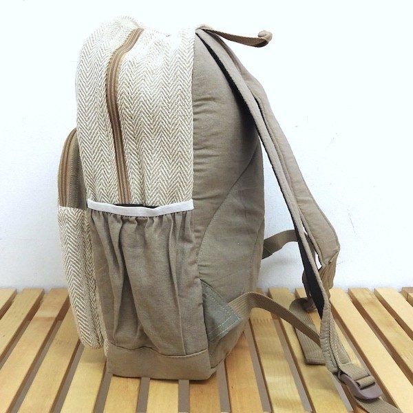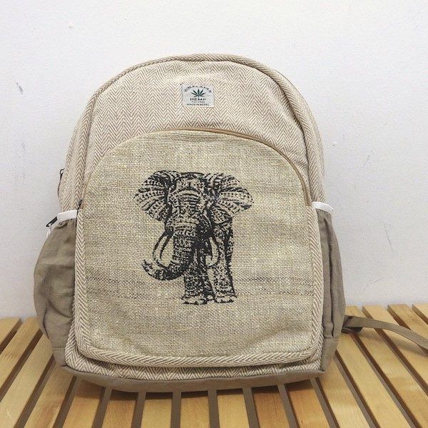 Mochila de cáñamo ecológico con elefante importado de Nepal a través de comercio ético.