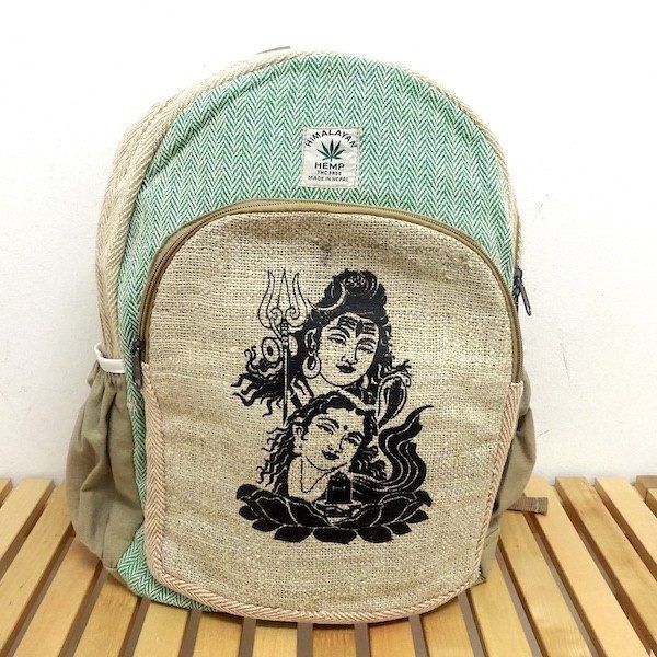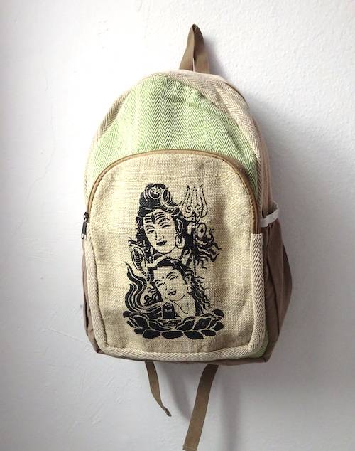 Mochila de cáñamo ecológico con Shiva y Shakti importado de Nepal a través de comercio ético.