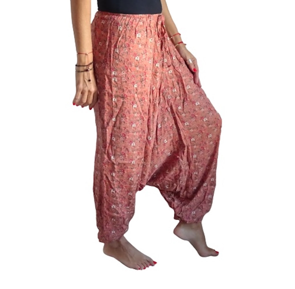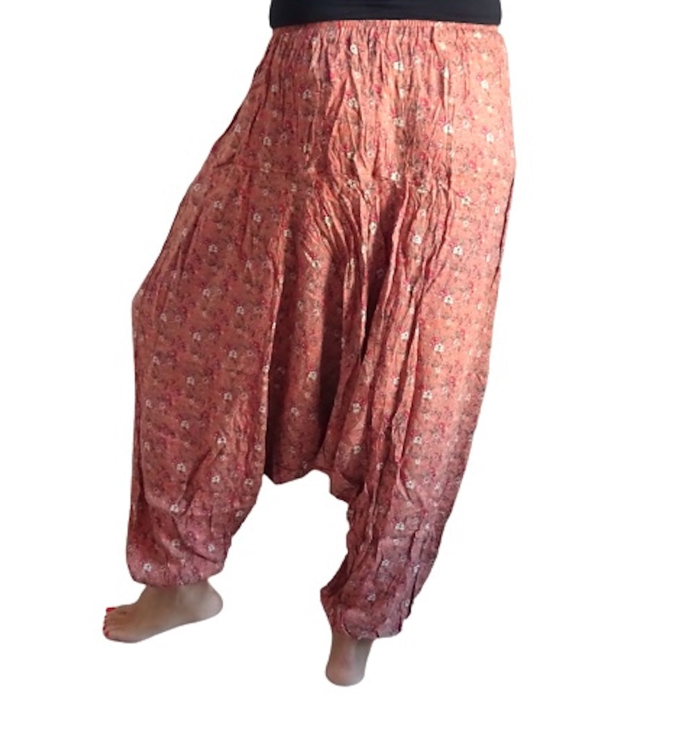 Pantalón étnico indio tipo afgano estampado de rayón importado de India a través de comercio ético.