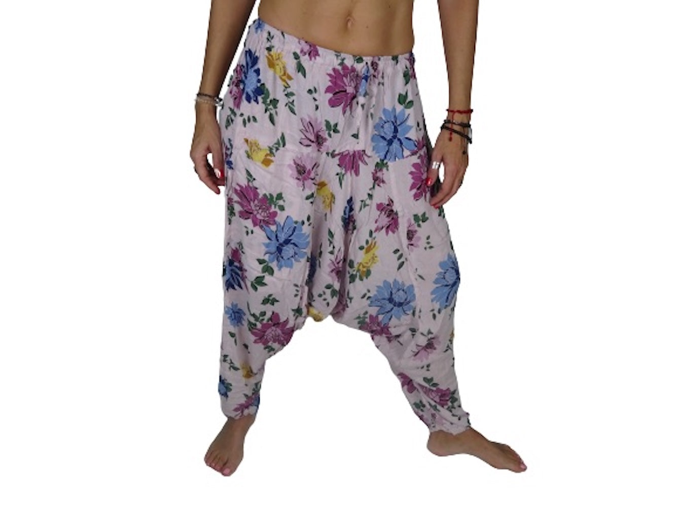 Pantalón afgano indio blanco estampado floral