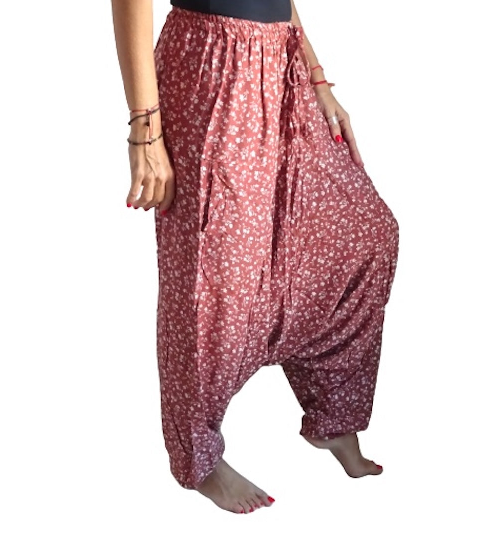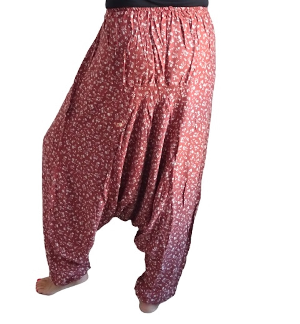 Pantalón étnico indio tipo afgano estampado de rayón importado de India a través de comercio ético.