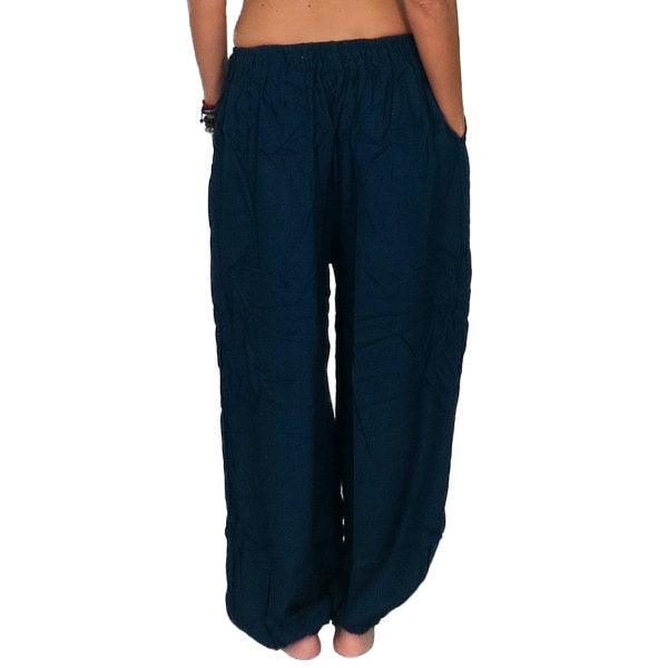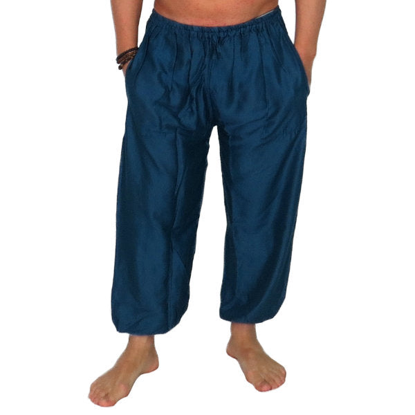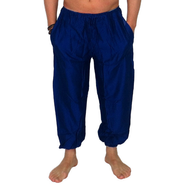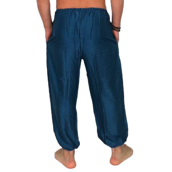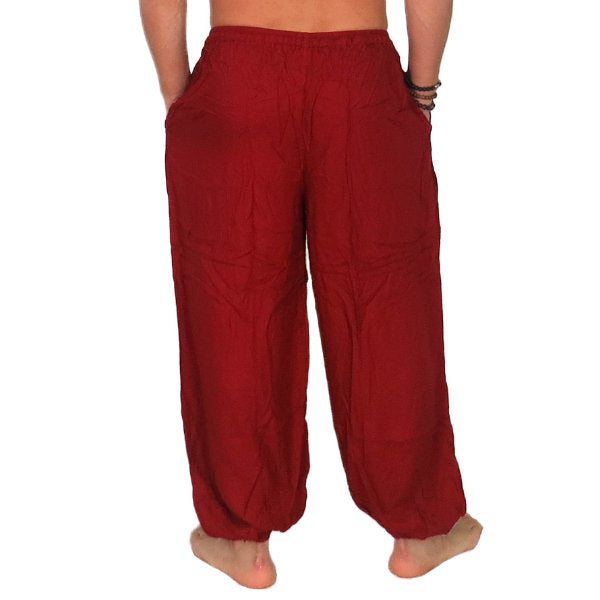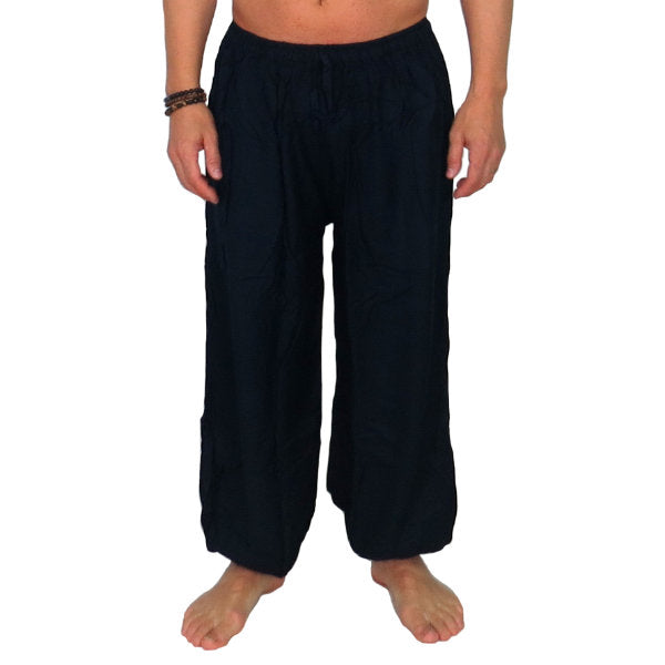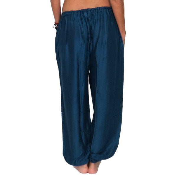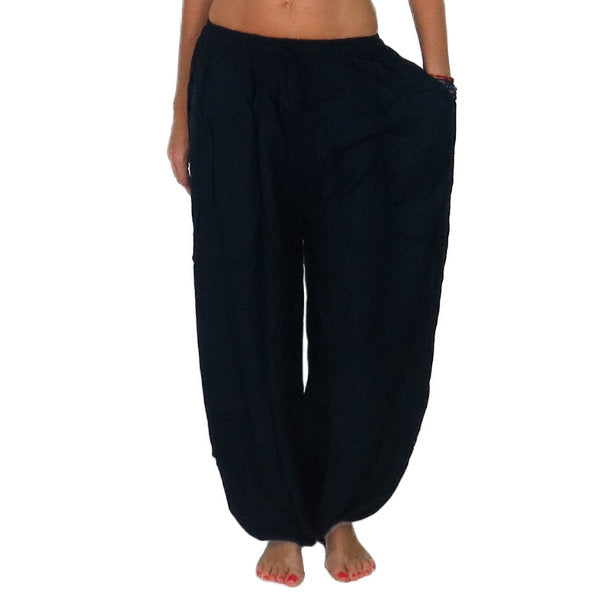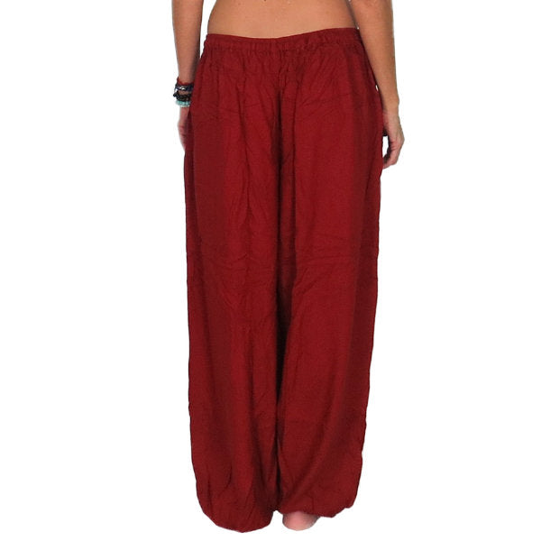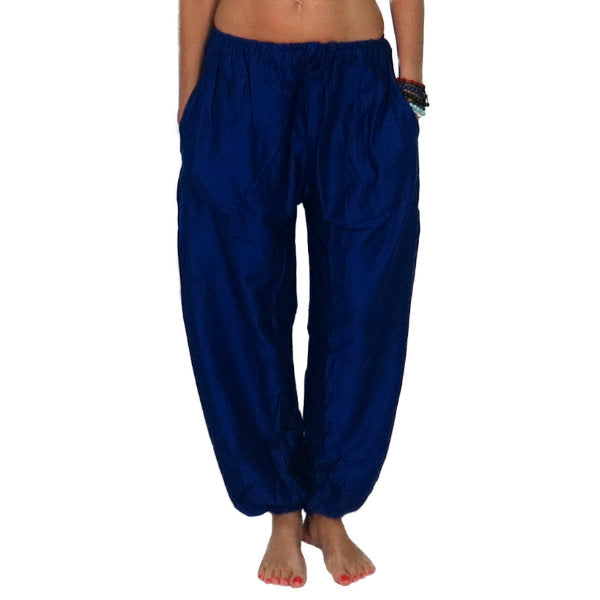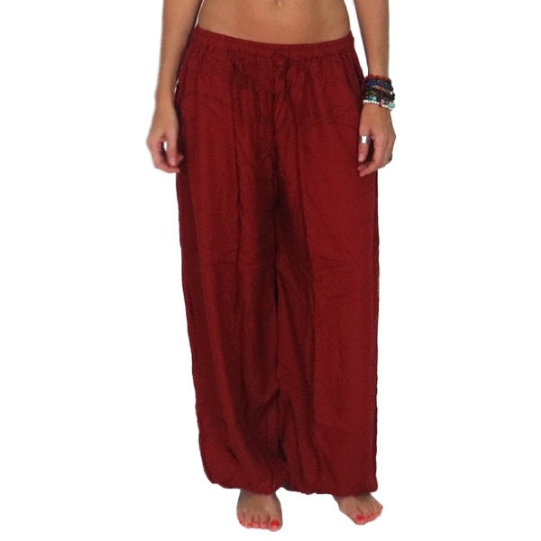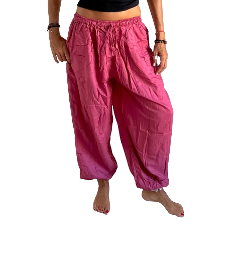 Pantalón étnico indio bombacho básico de rayón importado de India a través de comercio ético.