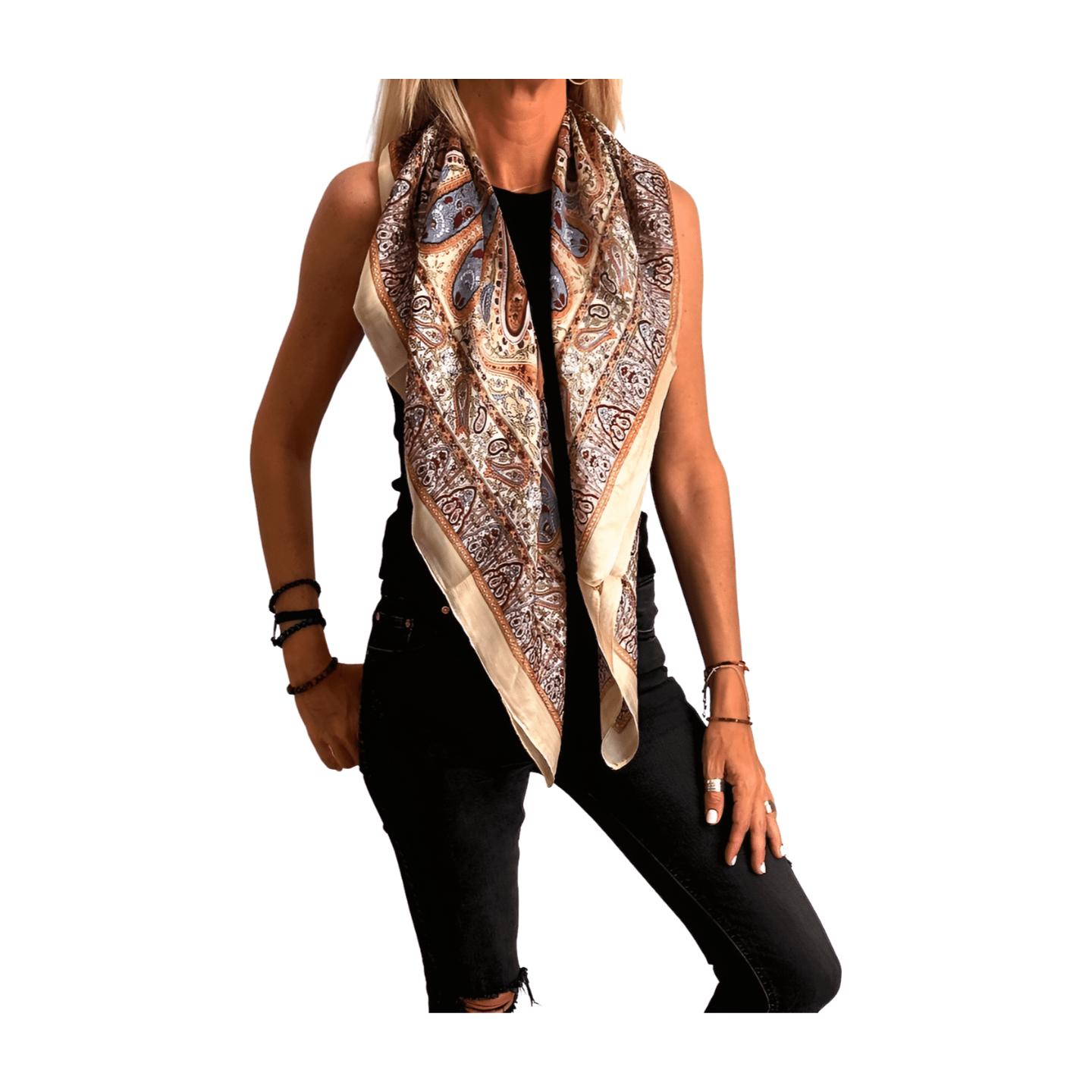 Pañuelo de seda de la india estampado crema