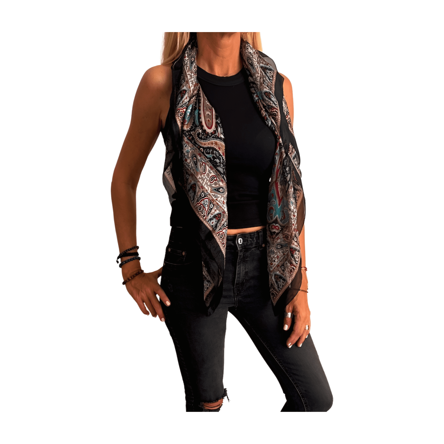 Pañuelo de seda de la india estampado negro importado de India a través de comercio ético.