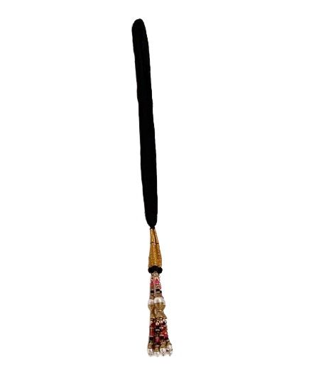 Este modelo de paranda está adornado en el extremo con abalorios de colores