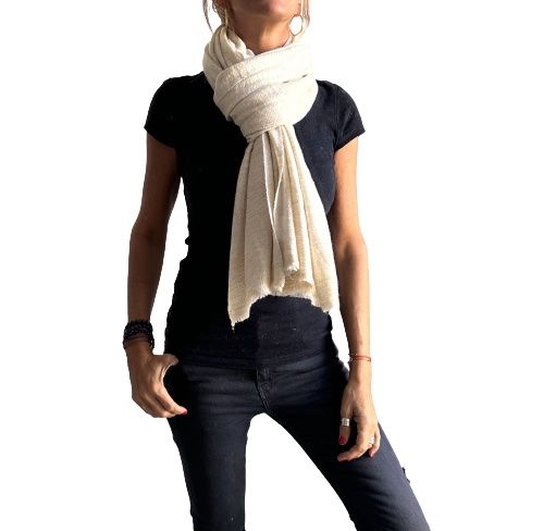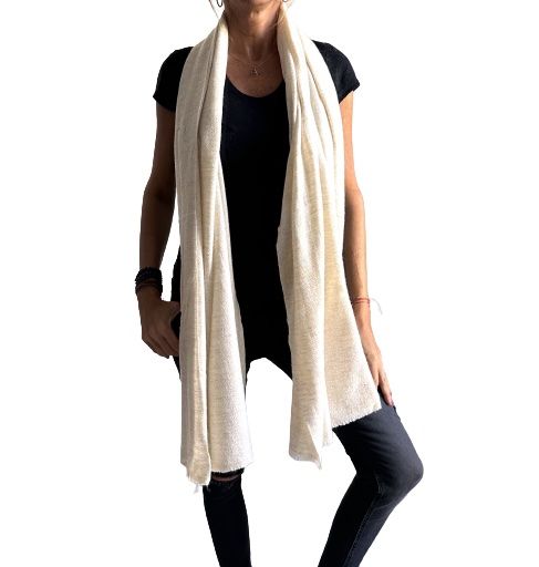 Pashmina de cashmere color vainilla de alta calidad importada de India a través de comercio ético.