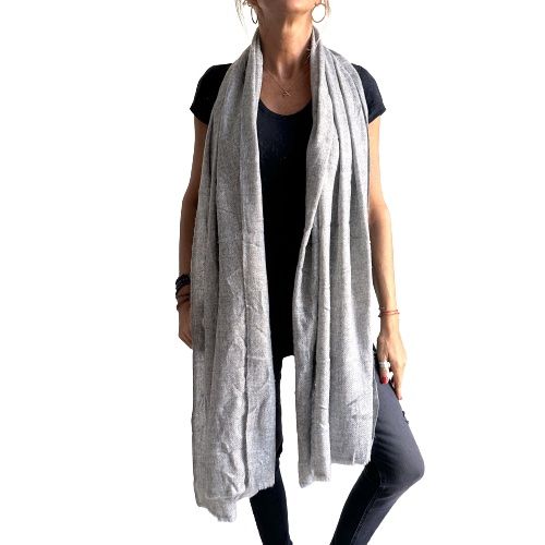 Pashmina india de lana 100% cashmere color gris claro importada de India a través de comercio ético.