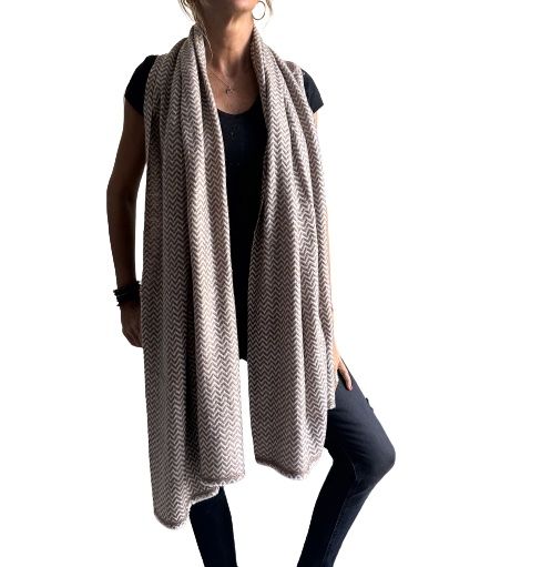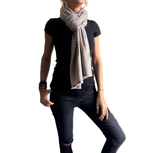 Pashmina de cashmere espiga color marrón de alta calidad importada de India a través de comercio ético.