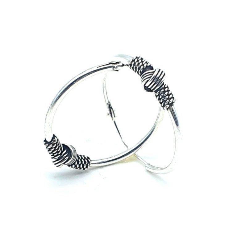 Pendientes aros de plata estilo Bali que se cierra introduciendo el cierre de plata en un agujero.