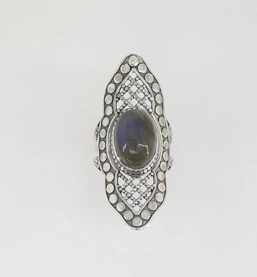 Anillo de plata con labradorita importados de la india mediante comercio ético.