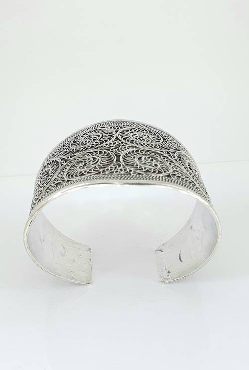 Brazalete ancha de plata rígida grabada importada de la india mediante comercio ético.