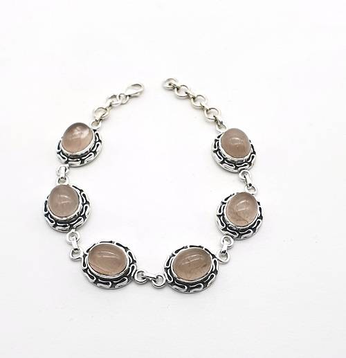 Pulsera de plata con cuarzo rosa importada de la india mediante comercio ético.