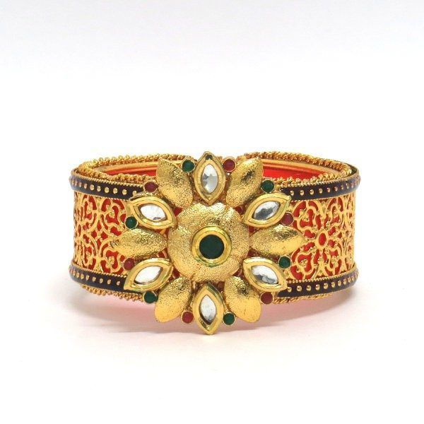 Pulseras Kangan rígida de color rojo, granate y dorado importadas de la india a través de comercio ético.