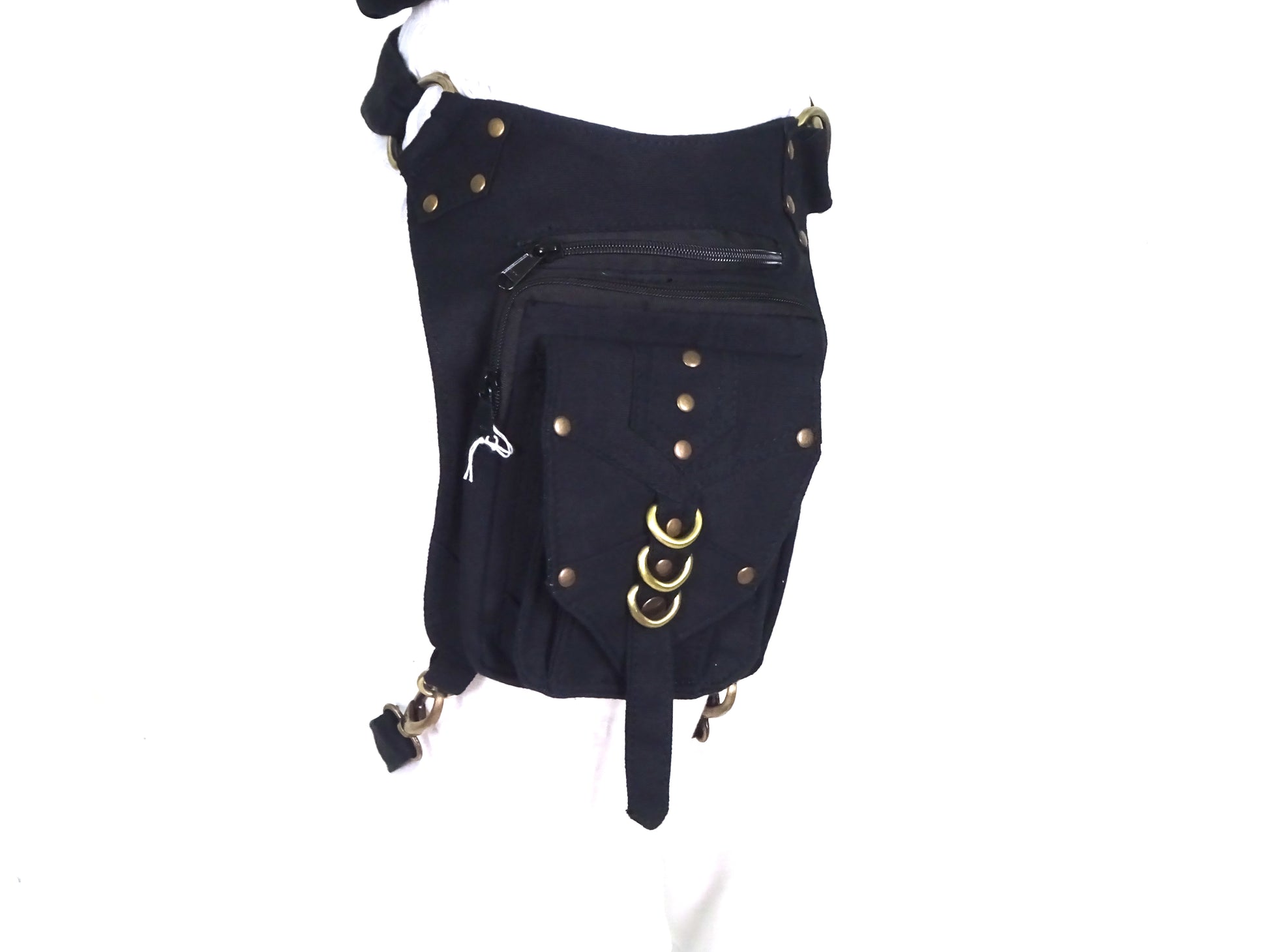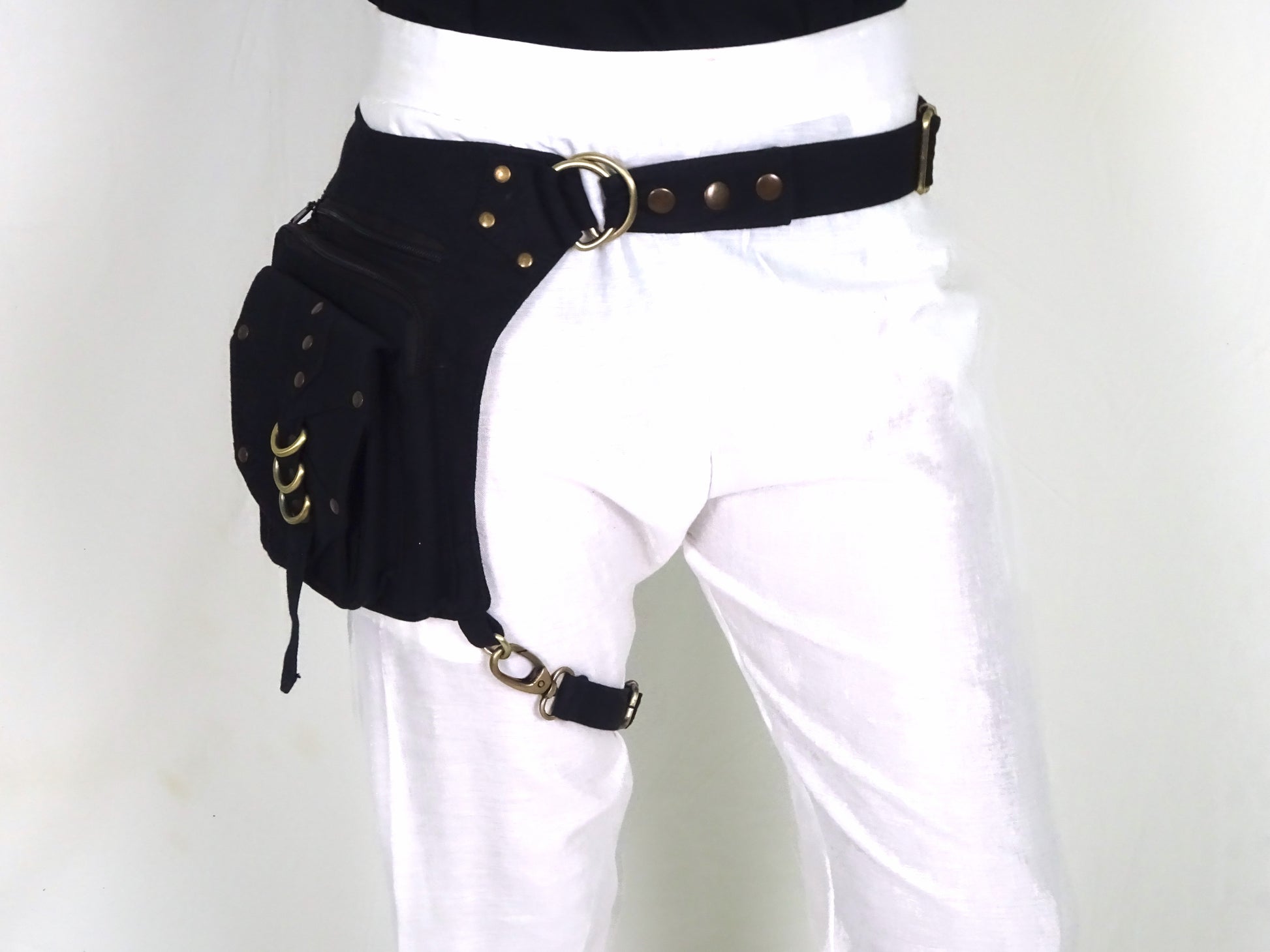 Tiene diversos compartimentos y se ajusta mediante un cinturón clásico.
