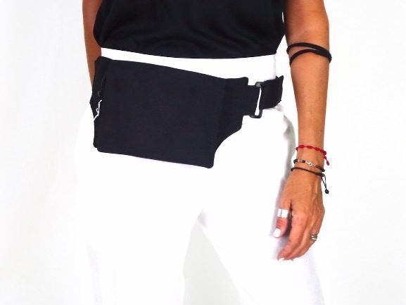 Tiene diversos compartimentos y se ajusta mediante un cinturón click.