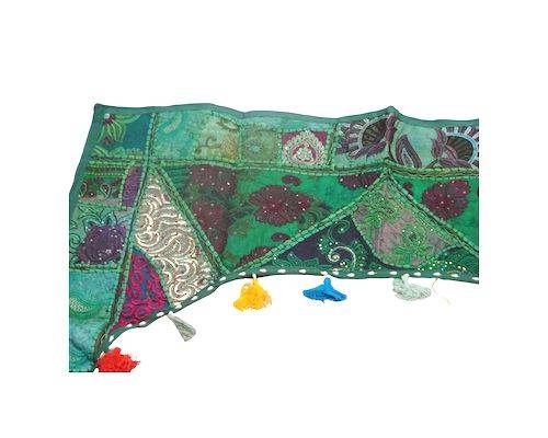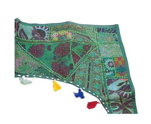 Tapiz Toran arco étnico patchwork importado de India mediante comercio ético. Este tapiz indio para decorar puertas está elaborado a mano con retales de telas recicladas.