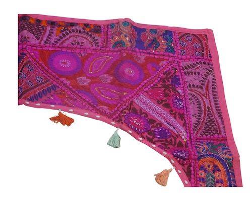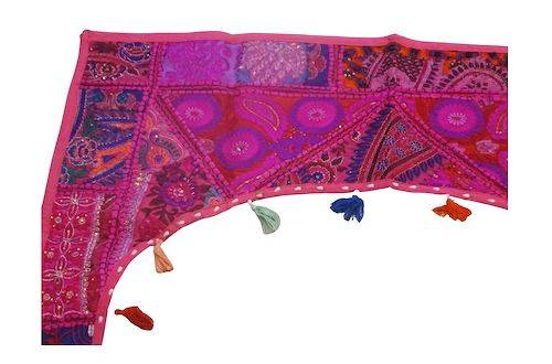 Tapiz Toran arco étnico patchwork importado de India mediante comercio ético. Este tapiz indio para decorar puertas está elaborado a mano con retales de telas recicladas.